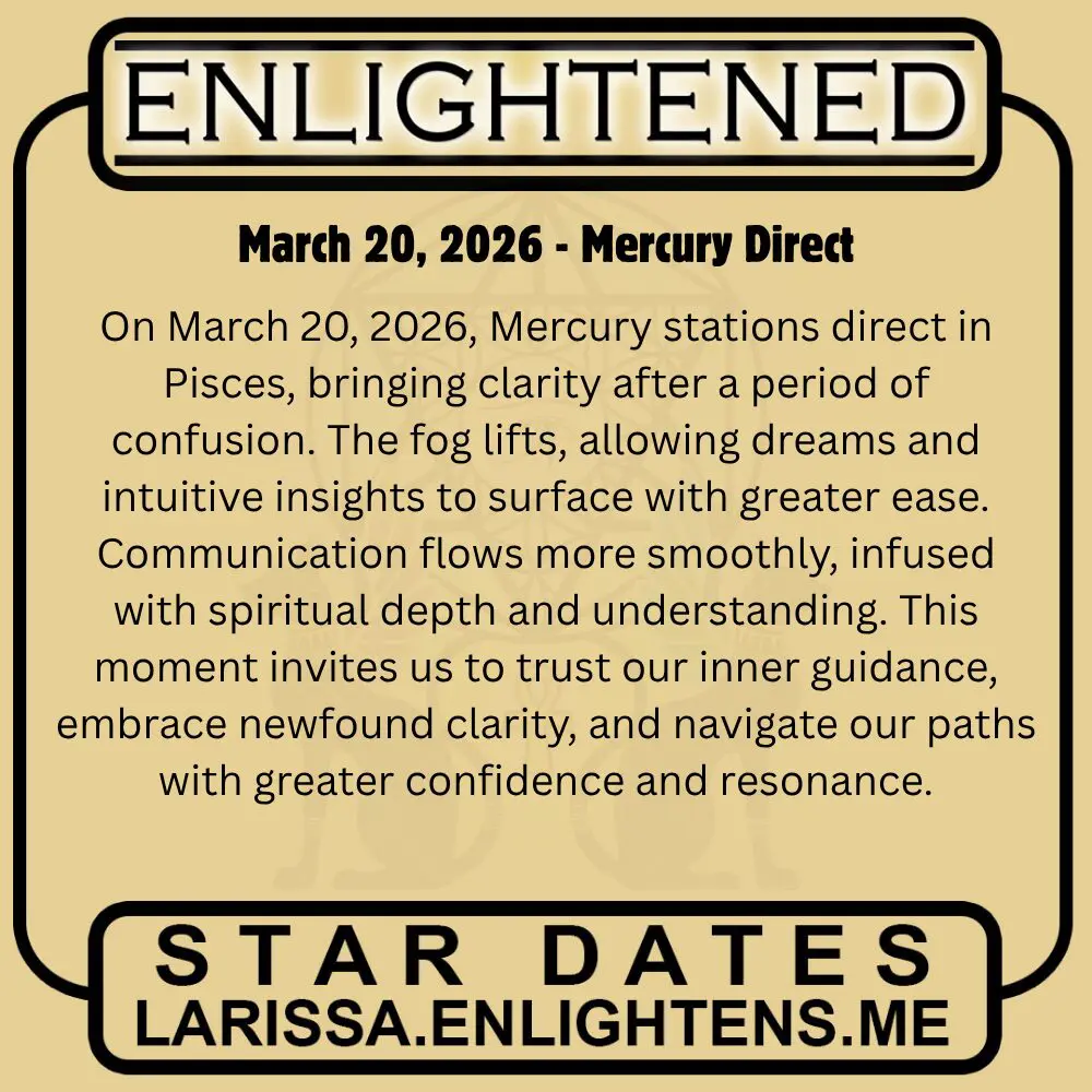 Clarity returns. Mercury stations direct on March 20th in Pisces, lifting the fog of confusion. Dreams become clear. Intuitions sharpen. Communication flows with spiritual depth.