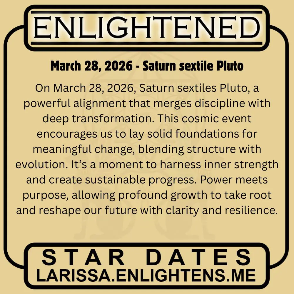 Power meets structure. Saturn sextiles Pluto on March 28th, blending discipline with transformation. Deep change can be built. Evolution becomes sustainable. Progress is profound.